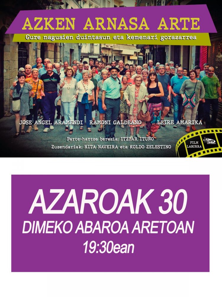 “AZKEN ARNASA ARTE” FILM LABURRAK ZIRKUITATZEN JARRAITZEN DU