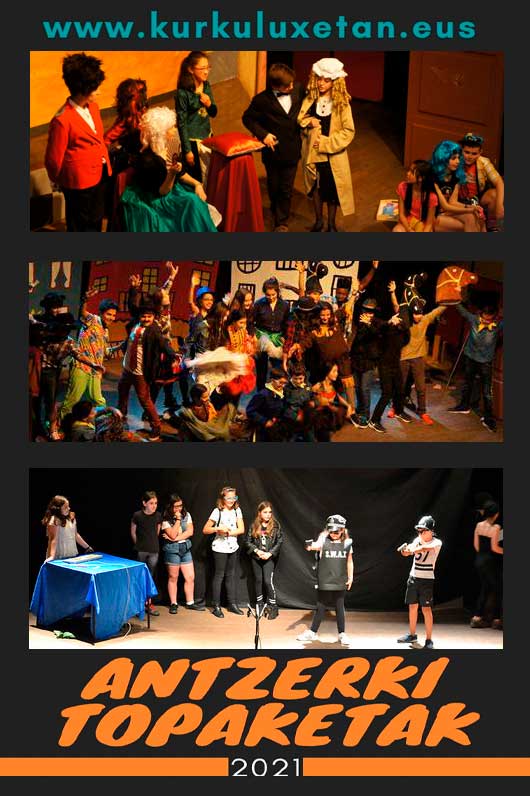Kurkuluxetan elkarteak hainbat ikastetxetan dramatizazioa ematen du eta bertan hainbat ume ibiltzen dira antzerkia ikasten.